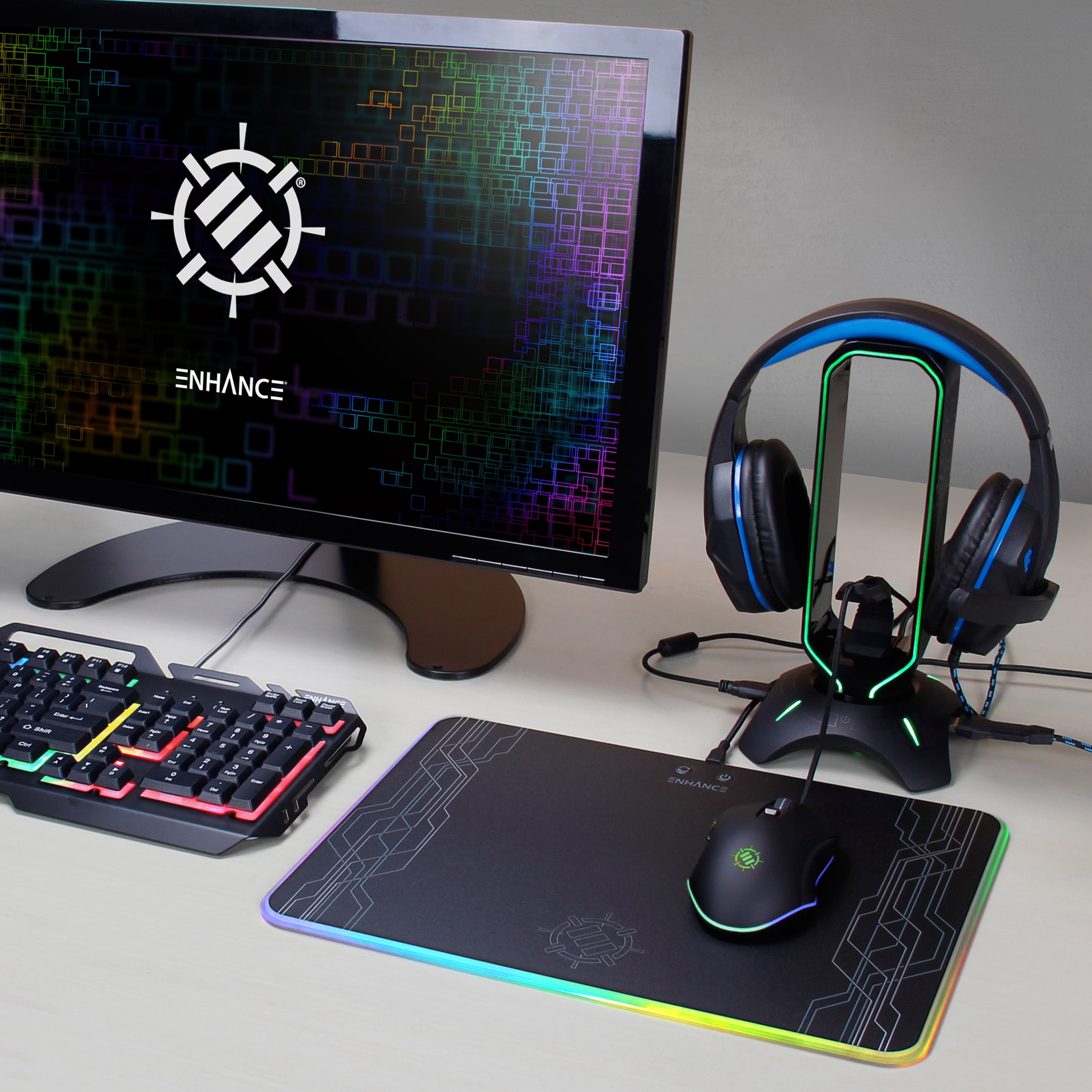Enhance Gaming Headset Stand Led Headphone Hanger With Mouse Bungee And 2 Port Usb Hub 7 Rgb Colors Color Changing Mode Headset Hanger Mouse Bungee 3 In 1 Gaming Desktop Accessory Walmart Com